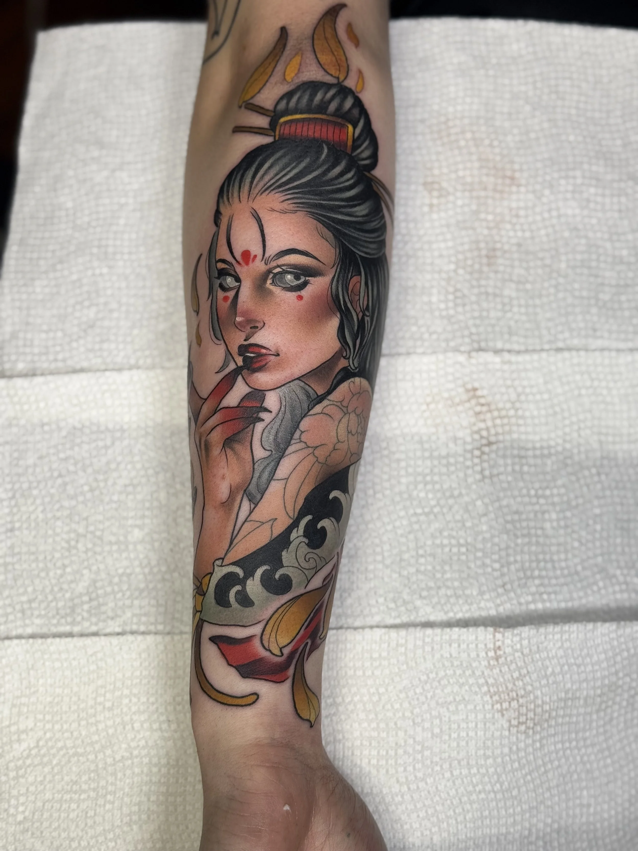 I started tattooing in Maryland in 2012 at Olde Line Tattoo under Dave Kruseman. I moved around over the years and have settled in Savannah now. My style is mainly traditional/ neo-traditional, I love doing bright and bold tattoos but also like doing black and gray. When I’m not tattooing I like to go to kickboxing and hangout with my boyfriend, 2 dogs and my cat.